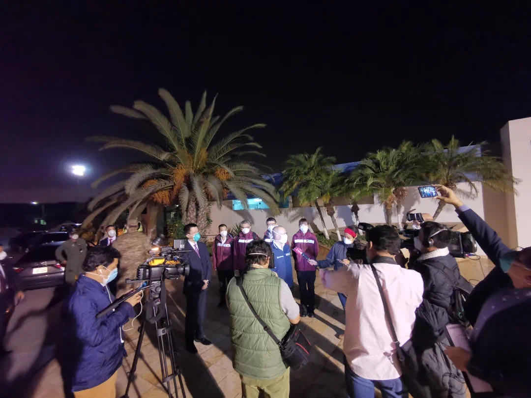 「驻秘鲁大使、秘方卫生部长等亲切接机」