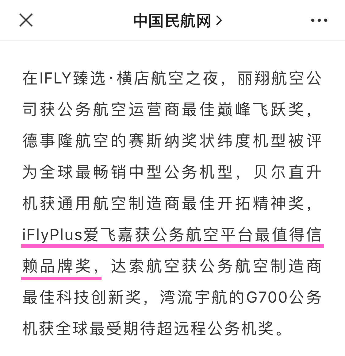iFlyPlus爱飞嘉获公务航空平台最值得信赖品牌奖