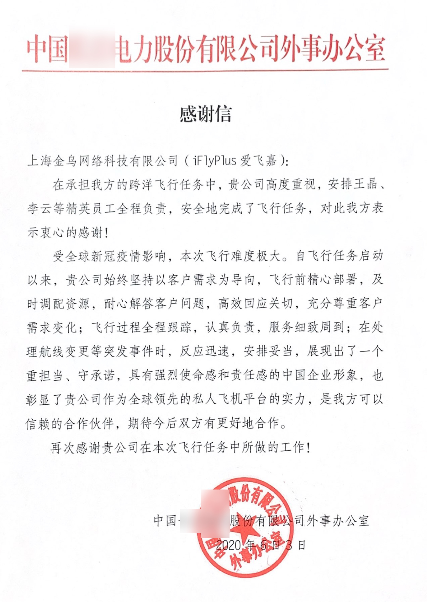 「爱飞嘉iFlyPlus私人飞机平台的 服务保障工作得到了各方高度评价」